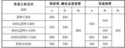 七、綜合管廊的管道安裝凈距(如下圖示),不宜小于下表規定的數值。