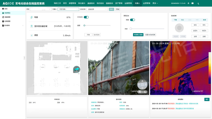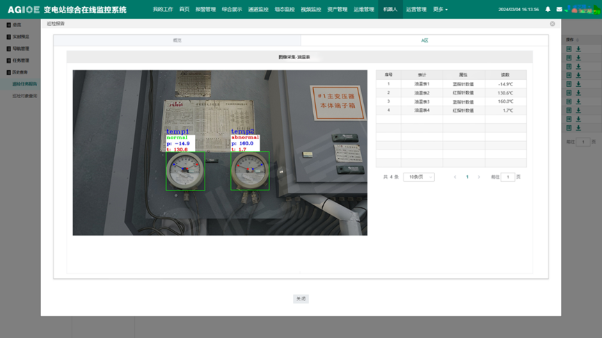 搭載可見(jiàn)光與紅外熱成像雙攝像頭,支持表計讀數、開(kāi)關(guān)狀態(tài)識別、設備溫度監測等功能,識別準確率行業(yè)領(lǐng)先,即使光照劇烈變化也能穩定輸出結果。