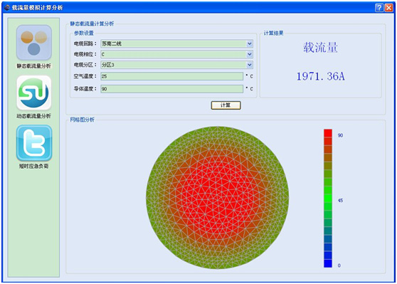 1. 采用先進(jìn)的有限元法進(jìn)行載流量計算,極大的提高了電纜芯線(xiàn)溫度計算精度,該技術(shù)國內領(lǐng)先;