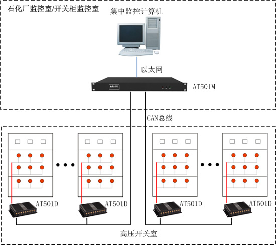 石化生產(chǎn)工藝復雜,涉及諸多高低壓用電設備,設備安全運行依托于大量的高壓開(kāi)關(guān)柜穩定可靠。但是開(kāi)關(guān)柜設備使用時(shí)間過(guò)長(cháng)、過(guò)載、絕緣老化時(shí),均會(huì )產(chǎn)生局部過(guò)熱現象。如果不能及時(shí)發(fā)現溫度異常并采取措施,將會(huì )導致觸頭或連接點(diǎn)溫升過(guò)高,直至燒毀,造成停電,因此,及時(shí)、準確的監測高壓開(kāi)關(guān)柜的溫度變化并發(fā)出預警,使用戶(hù)有充分的時(shí)間采取相應的措施,避免發(fā)生事故或引起火災就尤為重要。
